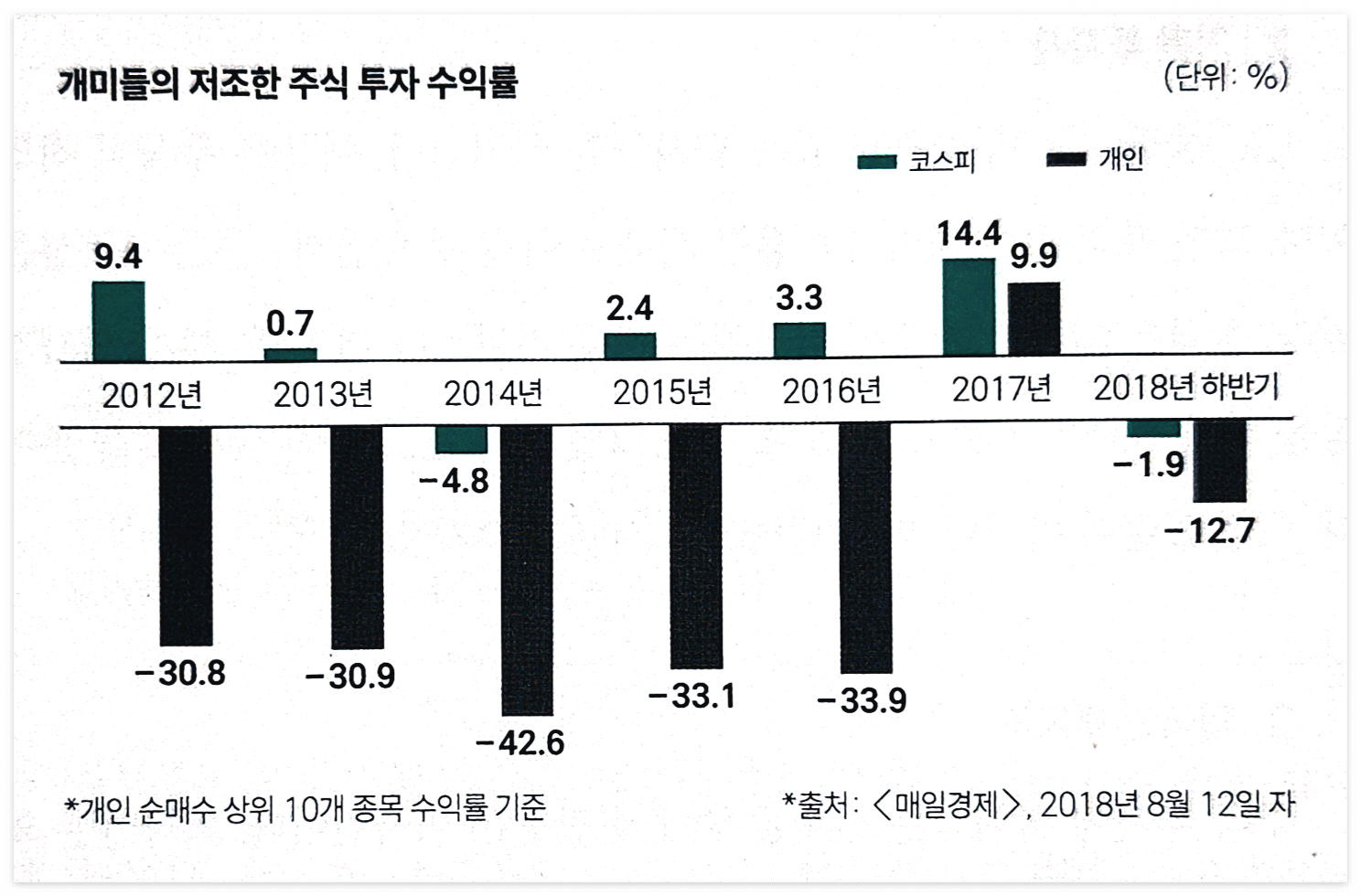 이처럼 지수가 상승했음에도 개인 투자자들은 오히려 손실을 보는 경향이 강했다. 이는 정보 부족, 심리적 요인, 비효율적인 매수·매도 타이밍 등 복합적인 문제에서 비롯된 것이다.