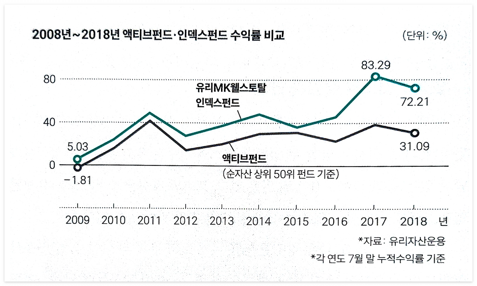 1) 2008년~2018년 수익률 비교 (유리자산운용 기준)